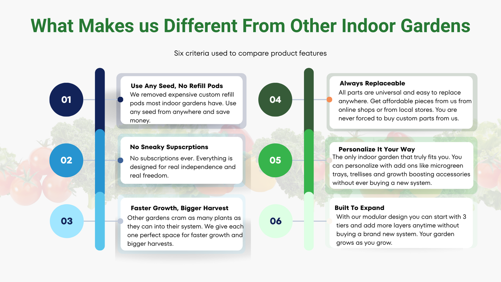Ordered the 4 tier tower while it was on kickstarter and I love it so much. Simple design and all pieces are replaceable. Company is responsive to solving any issues quickly and provides free indoor garden training. I got mine in January and already have greenbeans, peppers, strawberries, swiss chard, lettuce, tomato, oregano, kale and amaranth growing. Growing in the winter helps a ton with my seasonal affective disorder. Also, bonus it's a Canadian company. Saving up for a second!