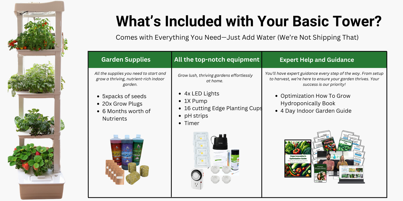 Start with easy-to-grow plants: Leafy greens like lettuce and herbs are a great place to begin. Follow the instructions carefully: The included guide provides valuable information on plant care and troubleshooting.Join the community: Connect with other Tower Garden owners online for support and inspiration “Eden Tower heroes” Ryan and Tessa are AWESOME, friendly, and very knowledgeable. It's a family run company and they're eager to share info and updates with you like family. 💜